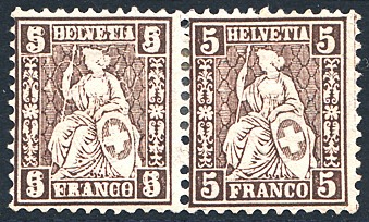 | 1881 sitzende Helvetia 5 Rp. Faserpapier "DOPPELPRÄGUNG,