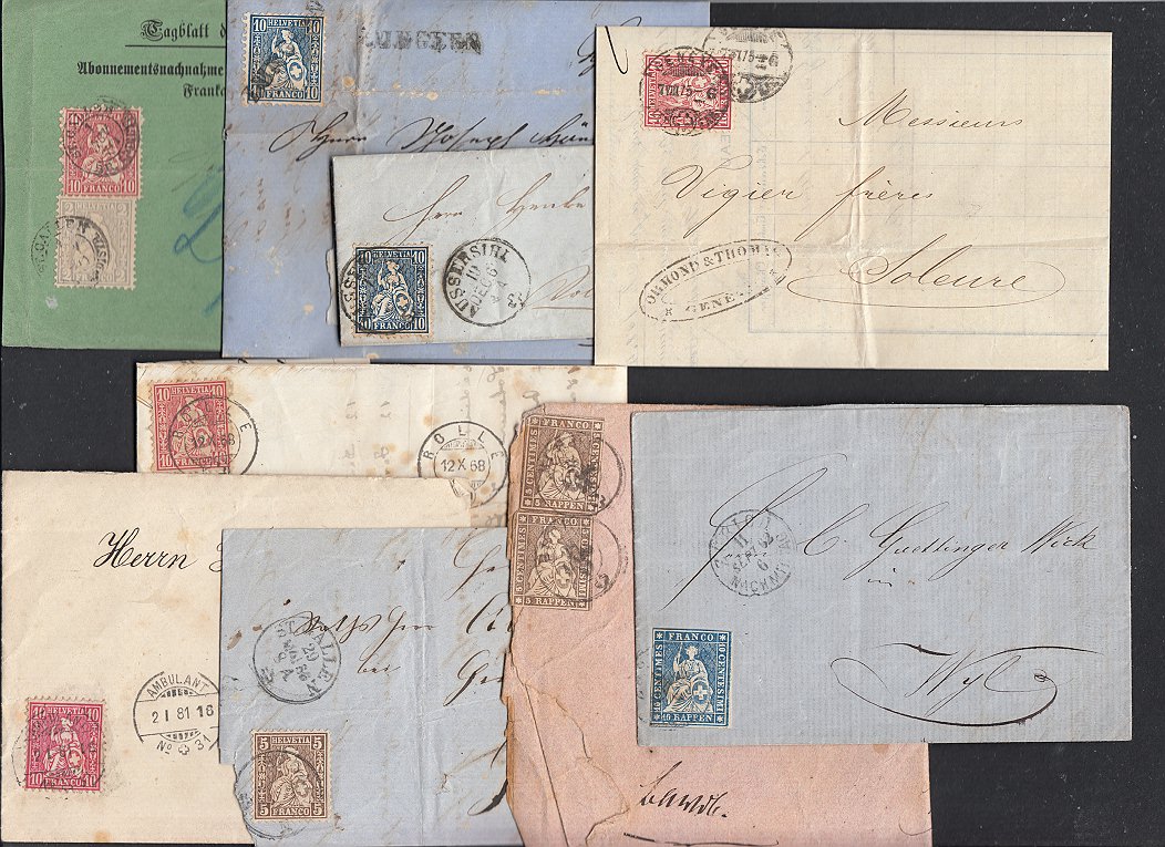 | Partie von 8 Belegen, meist mit sitzender Helvetia