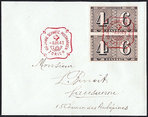 | 1943 100 Jahre Schweiz. Postmarken (Zst. Nrn. 258, W12-13,