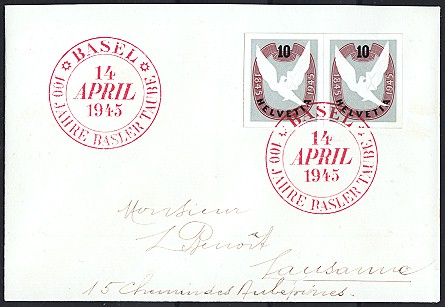 rotem Ersttags-Sonderstempel BASEL 14 APRIL 1945,