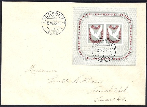 | 1945 100 Jahre Basler-Taube Block (Zst.