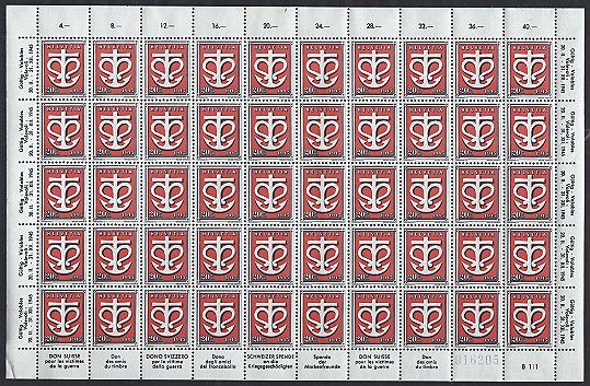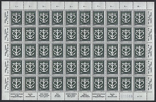 Originalbogen zu je 50 Stück, auf Bogennnummer 1 der