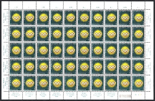 sowie noch die 5 Fr.-Marke, je in Originalbogen zu je 50