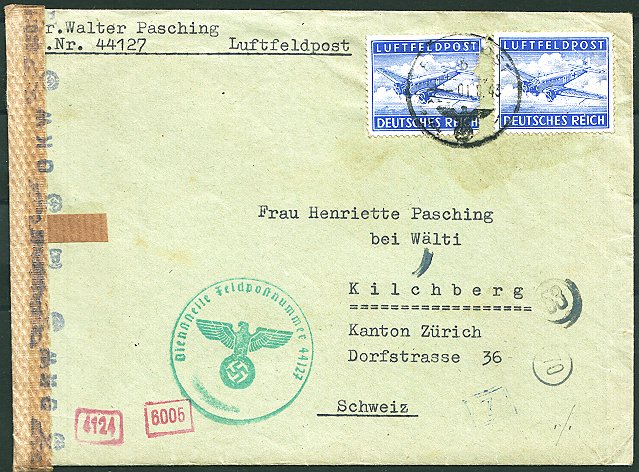 | 1943 zensurierter Luftfeldpostbrief mit