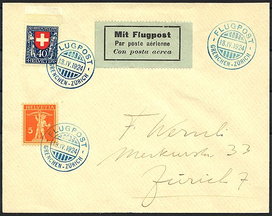 weitere Angebote finden Sie auf unserer Hauptseite unter Schweiz Flugpostmarken und bei Zeppelin-Belege - weltweit