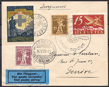 | 1925 Int. Flugmeeting Genf (LPHb SF 25.4), saubere, offizielle Karte, frankiert mit Kat. Nr. F 5, Vignette defekt, sonst ohne Fehler | CHF 20.-- |