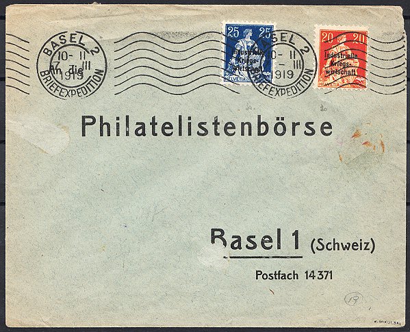 gestempelt BERN 22.II.19, in guter Erhaltung Kat. CHF 100.-- |