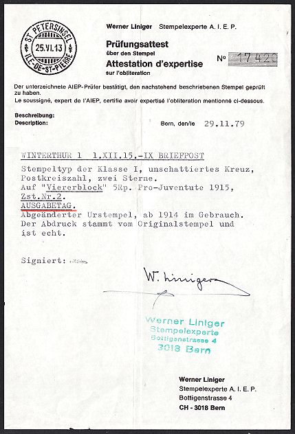 WINTERTHUR 1.XII.15, in fehlerfreier Erhaltung mit vollem