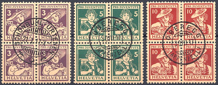 Pro Juventute Viererblocks 1913-1931
