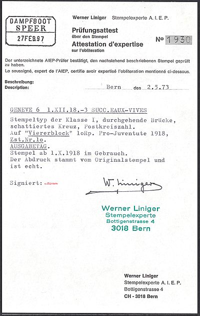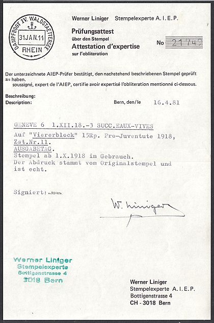 GENEVE 1.XII.18, fehlerfrei, Befund Liniger Kat. CHF 750.-- + |