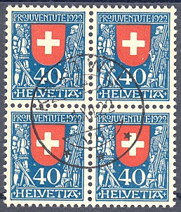 | 1929 Pro Juventute (Kat. Nrn. J 49-52, Mi. Nrn. 235-238), komplette Serie in Viererblocks, sauber postfrisch **, fehlerfrei | CHF 15.-- |