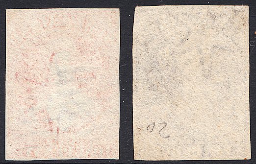 Wasserzeichen (Mi. Nrn. 13b + 16b), beide allseitig