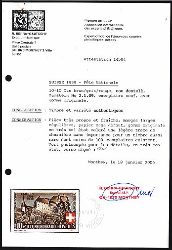 Attest Berra, selten ! Kat. für * Fr. 2'550.-- (Falzpreis) |