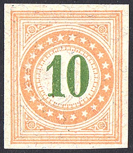 | 1883 Farbprobedruck 10 Rp. braunorange/grün, Type II
