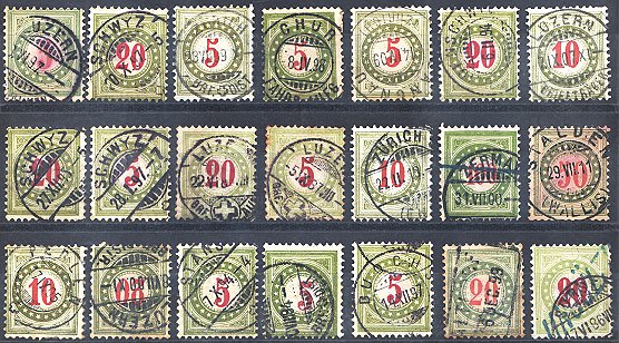 im Rotdruck auf mehreren Werten, sowie weitere kleine