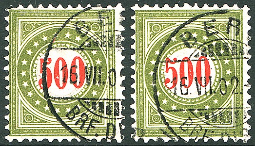 und 46z), 100 und 500 Rp. auf Faserpapier, dazu die 25 Rp.