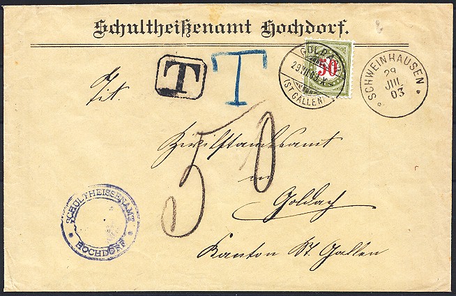 nach Goldach, dort nachtaxiert mit 50 Rp. (Zst. Nr. 20Gb