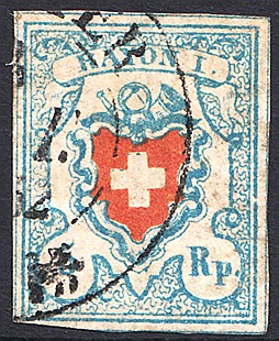 | 1851 Rayon I 5 Rp. ohne Kreuzeinfassung (Zst. Nr. 17II,