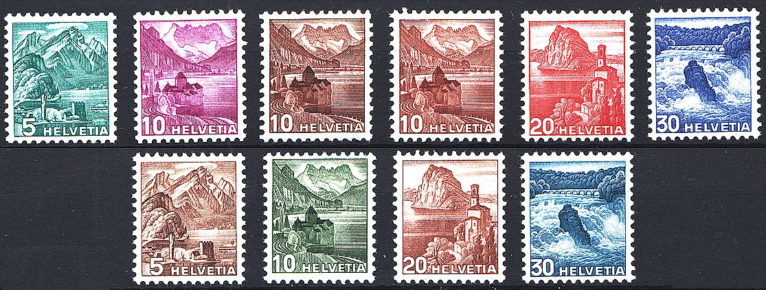 | 1948 Landschaften Farbänderungen (Zst. Nrn. 285/289