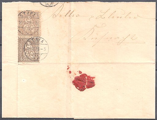 | 1878, 40 Rp. grau + 5 Rp. braun (Zst. Nrn. 30 + 42),