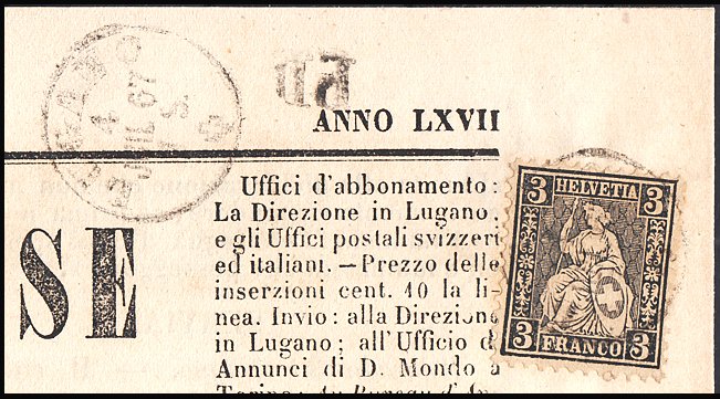 | 1874, 3 Rp. schwarz (Zst. Nr. 29, Mi. Nr. 21),