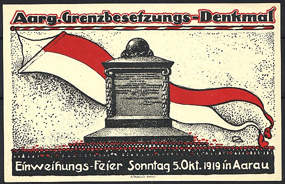 | 1919 AARG. GRENZBESETZUNGS-DENKMAL, Einweihungsfeier, Sonntag 5. Okt. 1919, saubere Originalkarte, ungebraucht und fehlerfrei | CHF 15.-- |