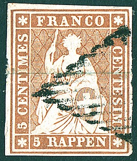 | 1854 5 Rp.-Strubel hellmattbraun (Zst. Nr. 22Ad, Mi.
