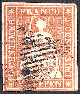 | 1854 5 Rp.-Strubel (Zst. Nr. 22A, Mi. Nr. 13Ib),