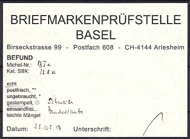 in sehr guter Erhaltung, signiert Moser, Attest Hermann Kat. CHF 250.-- + |