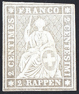 | 1862 Strubel 2 Rp. grau, Berner Druck III (Zst. Nr.