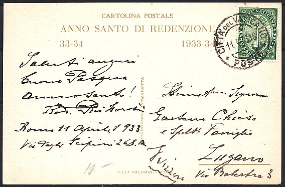 POSTE VATICANE 1.8.29, Beleg leicht unfrisch Kat. EUR 200,00 |