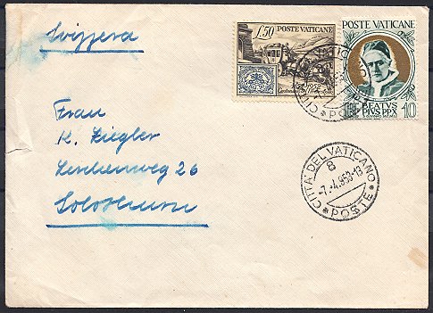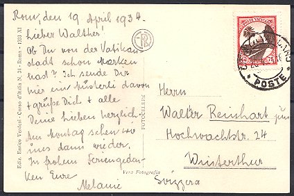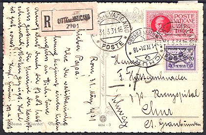 frankiert mit Mi. Nr. 22 und Vatikan Nr. 188, der