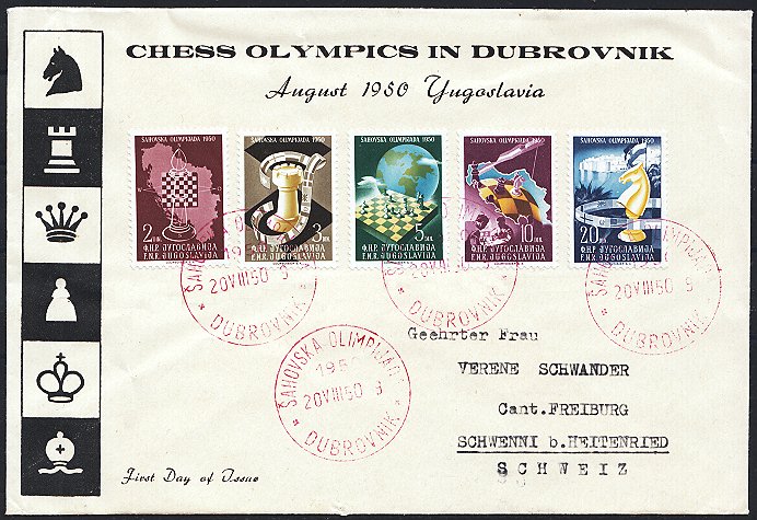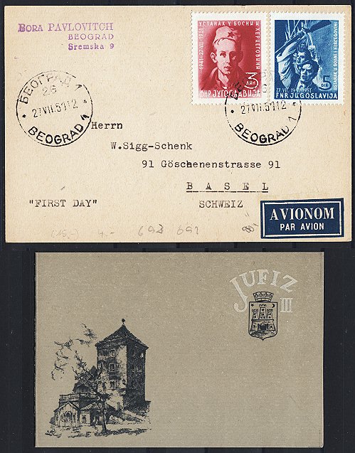 | kleine Partie mit sieben Belegen/FDC in die Schweiz und dem JUFIZ-Heftchen von 1956, alles in guter Erhaltung, Schach-FDC etwas knitterig | CHF 30.-- |