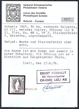 Plattenfehler "HELVETTA" (Zst. Nr. 88A.Pf., Mi.