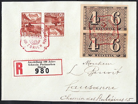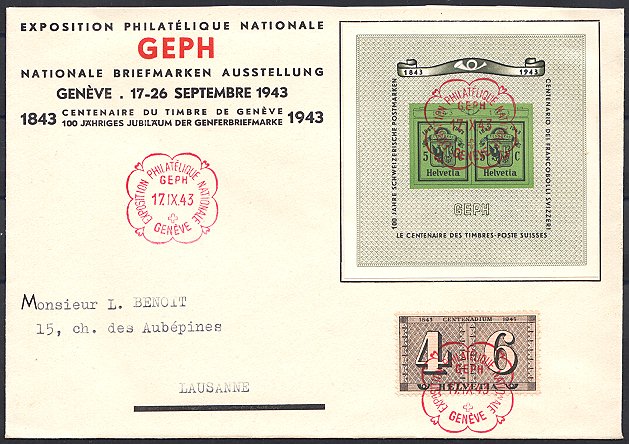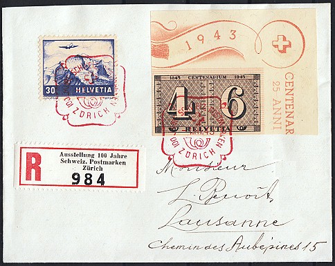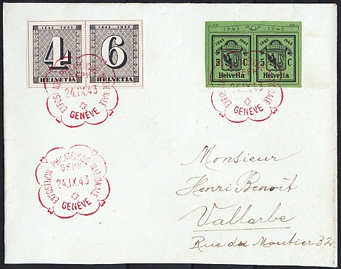 | 1943 100 Jahre Schweiz. Postmarken (Zst. Nrn. 258, W12-13,