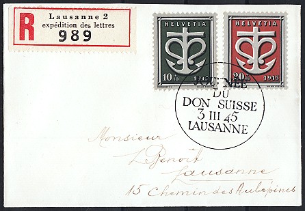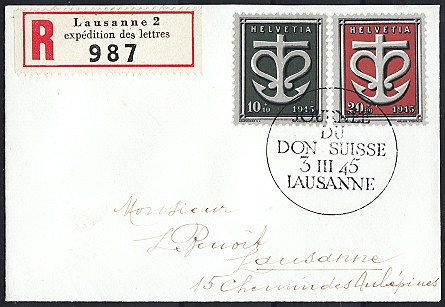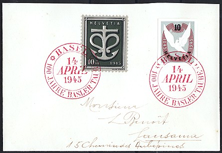 rotem Ersttags-Sonderstempel BASEL 14 APRIL 1945,