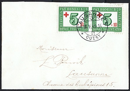 LAUSANNE 15.10.55, rückseitig Ausstellungs-Vignette Kat. Fr. 100.-- + |