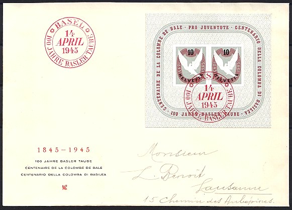 | 1945 100 Jahre Basler-Taube Block (Zst.