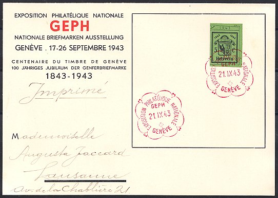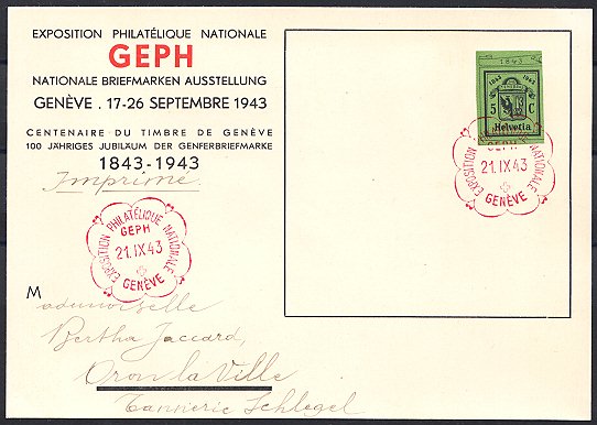 | 1943 Nat. Briefmarkenausstellung Genf (Zst. Nr. W17L