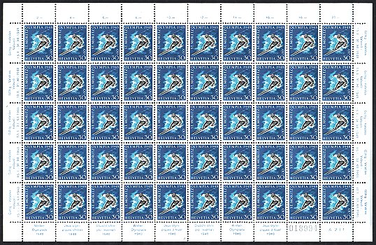 sowie noch die 5 Fr.-Marke, je in Originalbogen zu je 50