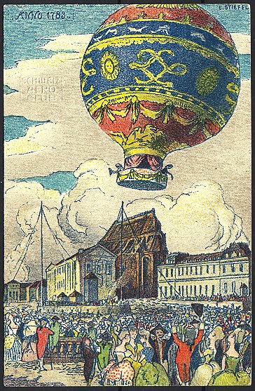 Lithokarte des Schweiz. Aero-Clubs mit Montgolfière, von