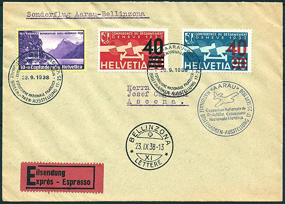 Sonderstempel ab Zürich bzw. ab Genf, fehlerfreie Belege