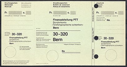 Einzahlungsschein (GS-HB. Nr. PTT 16 01 + 02), Engros-Partie
