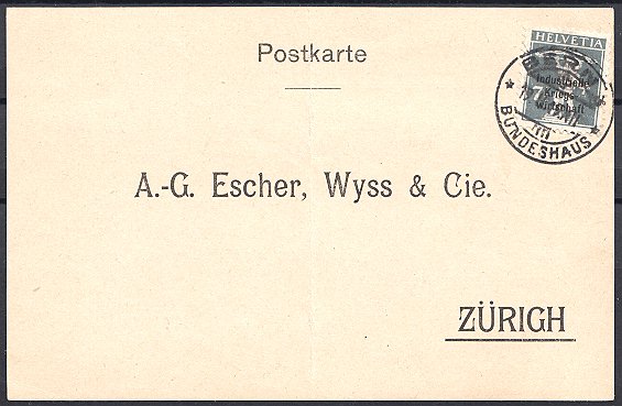 BERN 3 BUNDESHAUS 26.IX.18, eine Rarität bedarfsmässig