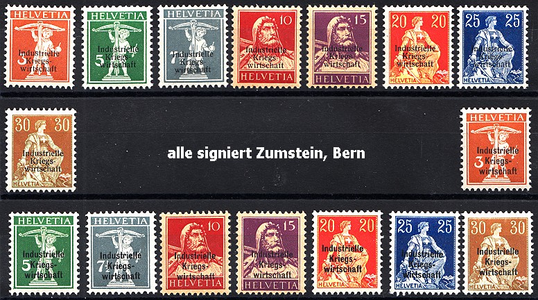 und Falz oben, jede Marke signiert Zumstein, Bern,