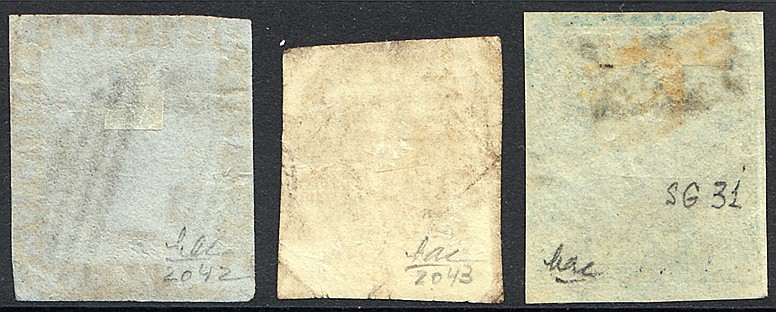 Telegraphenmarken (Mi. Nrn. 11, 15, 17), zwei Gulden kl.
