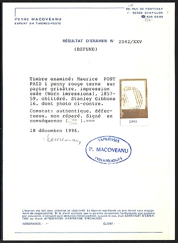 Stück der 1 P.-Marke, abgenutzte Platte (worn impression),