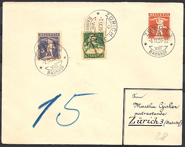 | 1926 unterfrankierter Brief, mittels Freimarken