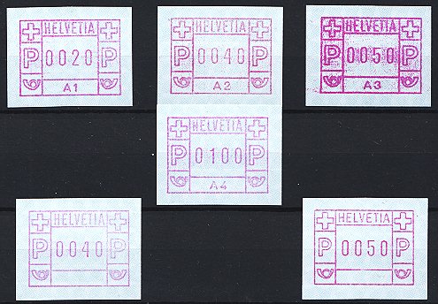 | 1978 ATM-Typ 2 (Zst. Nr. 2, Mi. Nr. 2), alles 40 Rp.-Wertstufen,