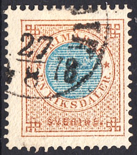 Riksdaler, Zähnung 13 (Mi. Nr. 26 B), bestens gezähnte